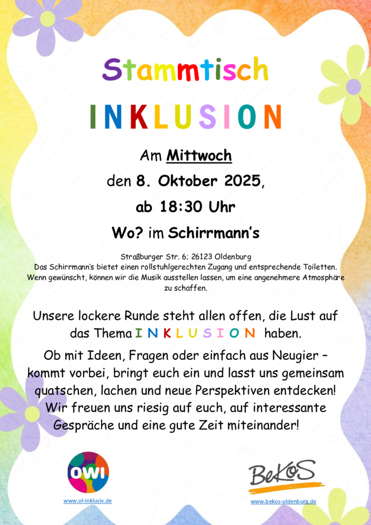 Politisch wurden mit dem Bundesteilhabegesetz Maßnahmen zur Übertragung der UN-BRK auf die allgemeinen Sozial-, Arbeits- und Bürgergesetze beschlossen. In Oldenburg gibt es auch noch einen kommunalen Aktionsplan.